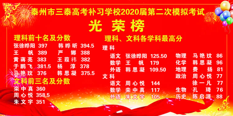 泰州市三泰高考补习学校2020届第二次模拟考试